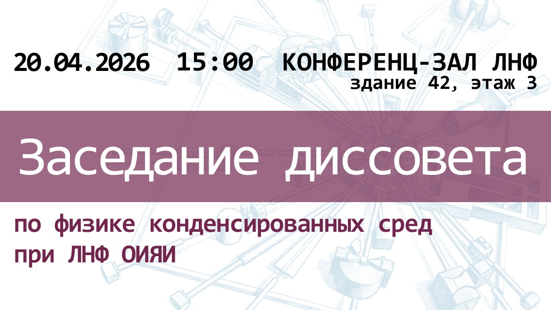 1. Защита кандидатской диссертации Петровой Марии Олеговны (ЛНФ ОИЯИ) «Позиционно-чувствительный детектор нейтронов на основе плоскопараллельной резистивной камеры с конвертером 10В4С»;