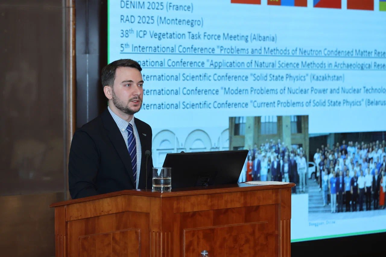 Заместитель директора ЛНФ по научной работе Б. Мухаметулы представил доклад о возобновлении программы экспериментальных исследований ЛНФ на ИБР-2. Получение пучкового времени для выполнения научных экспериментов осуществляется через подачу и экспертизу заявок на портале IBR-2 User Club. В 2025 году было одобрено 102 заявки из 114, в 2026 году - 101 из 111 заявок.